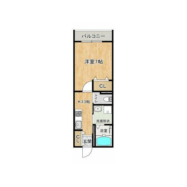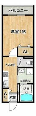 | 間取り | 1K(洋7、K3.3) | 主要採光面 | - |